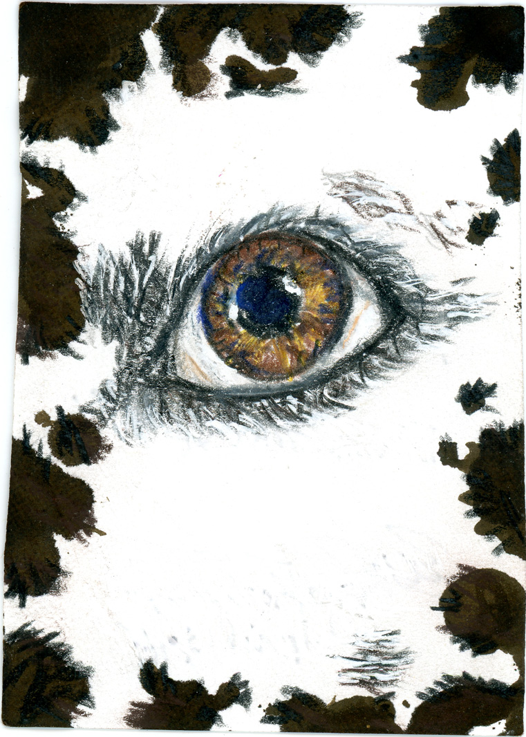 Apr 15 2015, "Dalmation Eye", sepa ink and art pencil gold gel ink sparkle